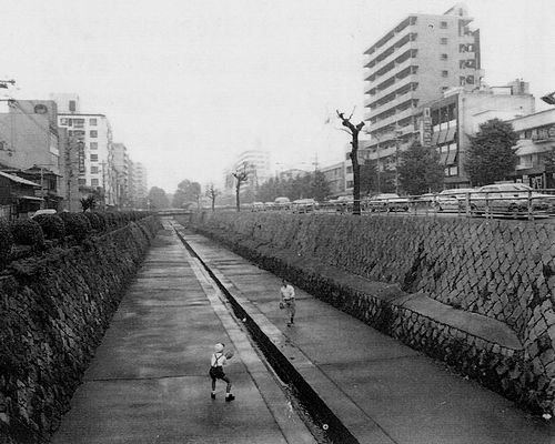 堀川の現状(川底で親子がキャッチボールをしています。)