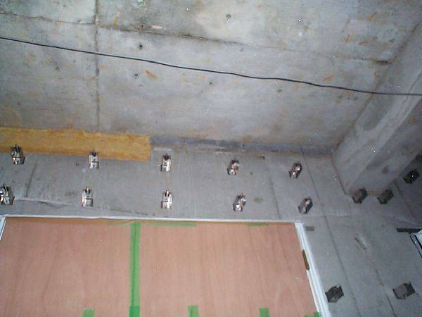 コンクリートの外壁には、材料の項で紹介した専用金物を定められたピッチで取り付けます。