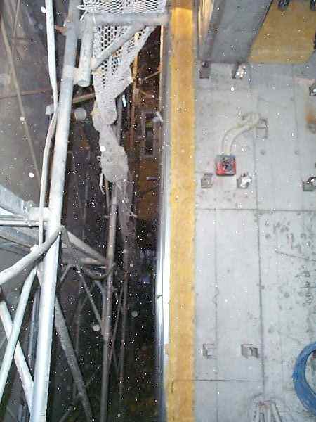 上の画像でも判りますが、上階のスラブを貫通して断熱材が降りてきています。